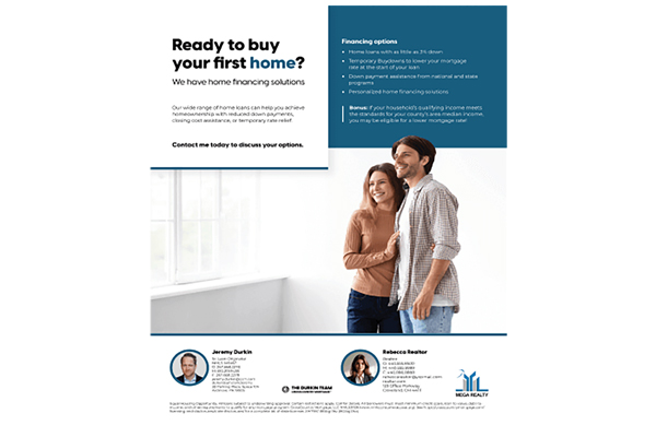 A quick flyer overview of financing solutions for your first-time homebuyers.