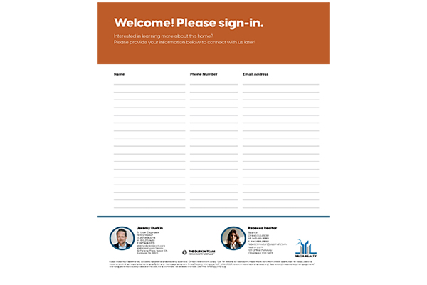 Open house sign-in sheet